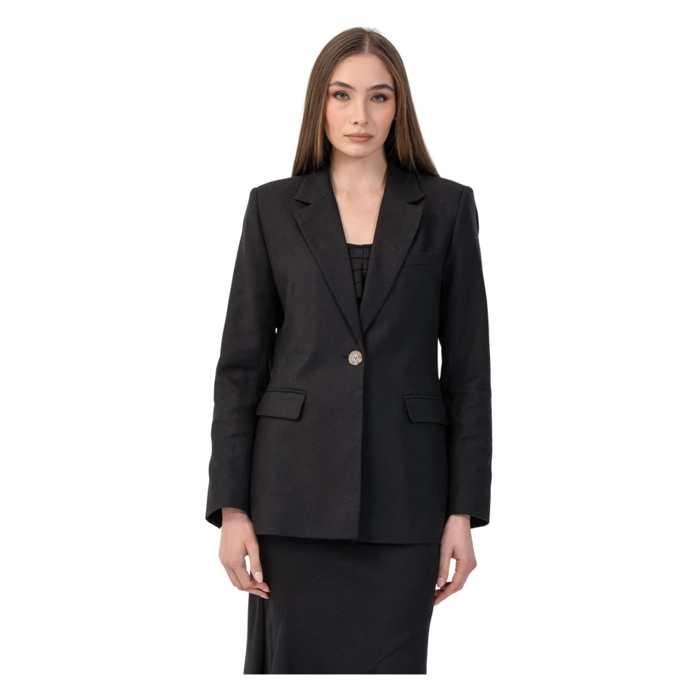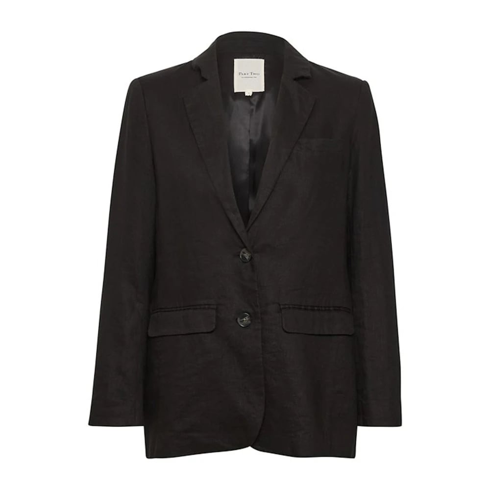 Part Two, Jakker , Dame, Sort, S, Sort Hør Blazer Jakke med Knapper