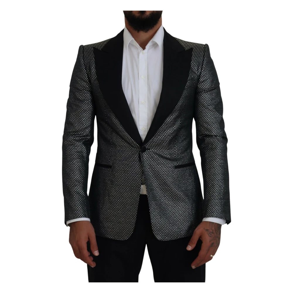 Dolce & Gabbana, Jakker , Herre, Sort, M, Polyester, Sort Sølv Jacquard Slim Fit Jakke Blazer