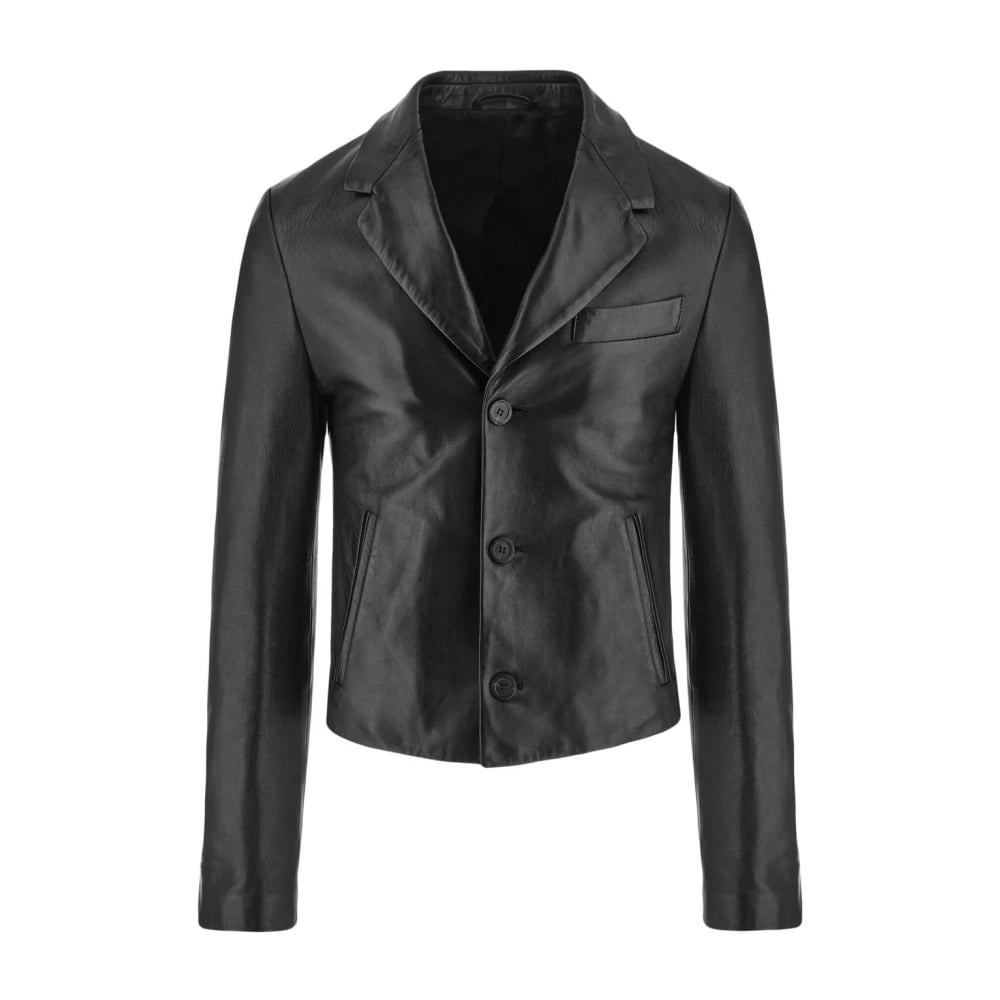 Ferragamo, Jakker , Herre, Sort, M, Læder, Sort Læder Blazer Slim-Cut Jakke