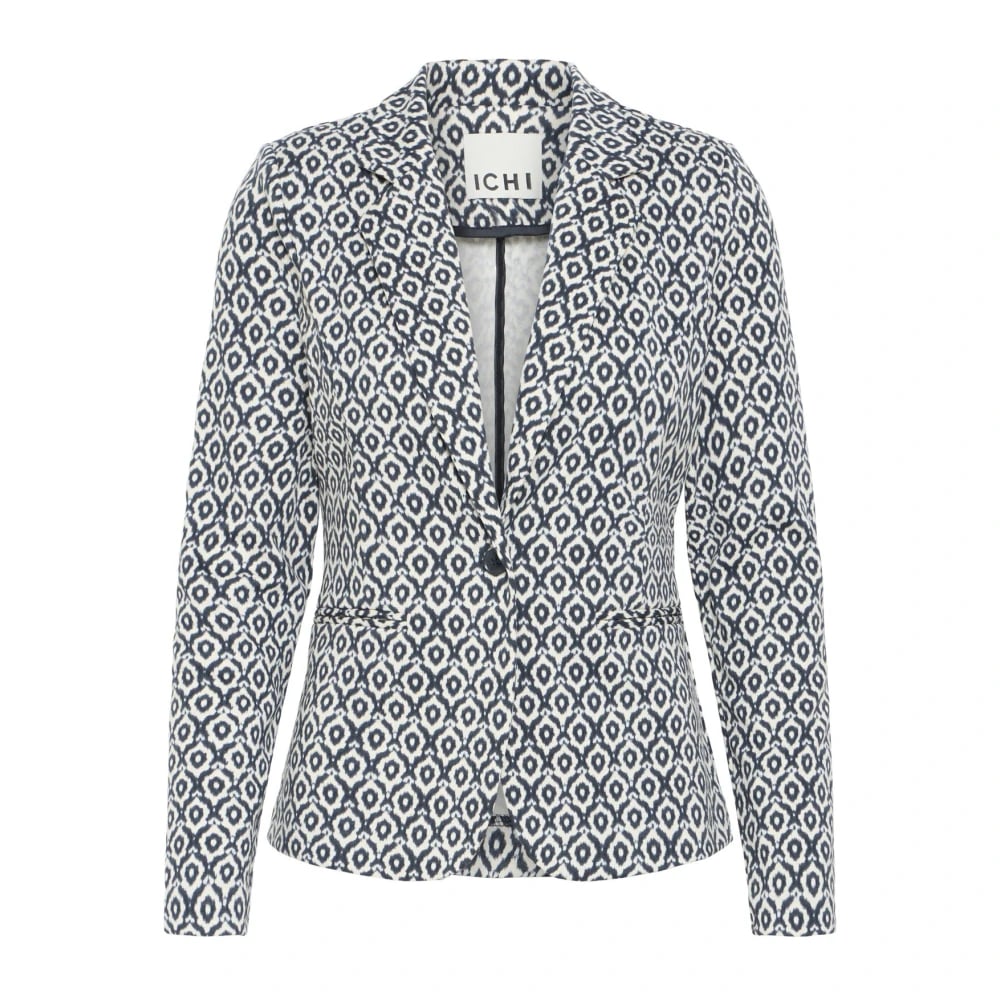 ICHI, Jakker , Dame, Grå, L, Polyester, Eclipse Ikat Tile Blazer Jakke