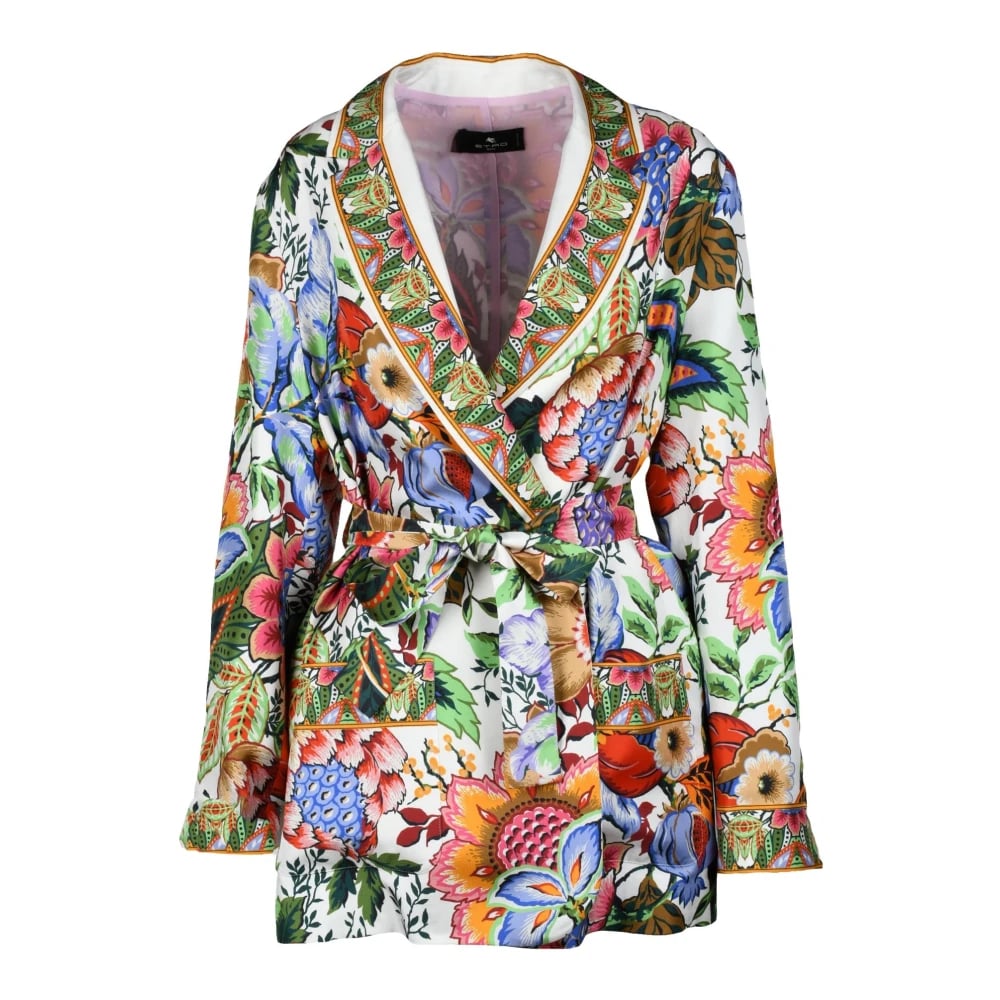 Etro, Jakker , Dame, Flerfarvet, XS, Silke Kimono Blazer Jakke med Bælte