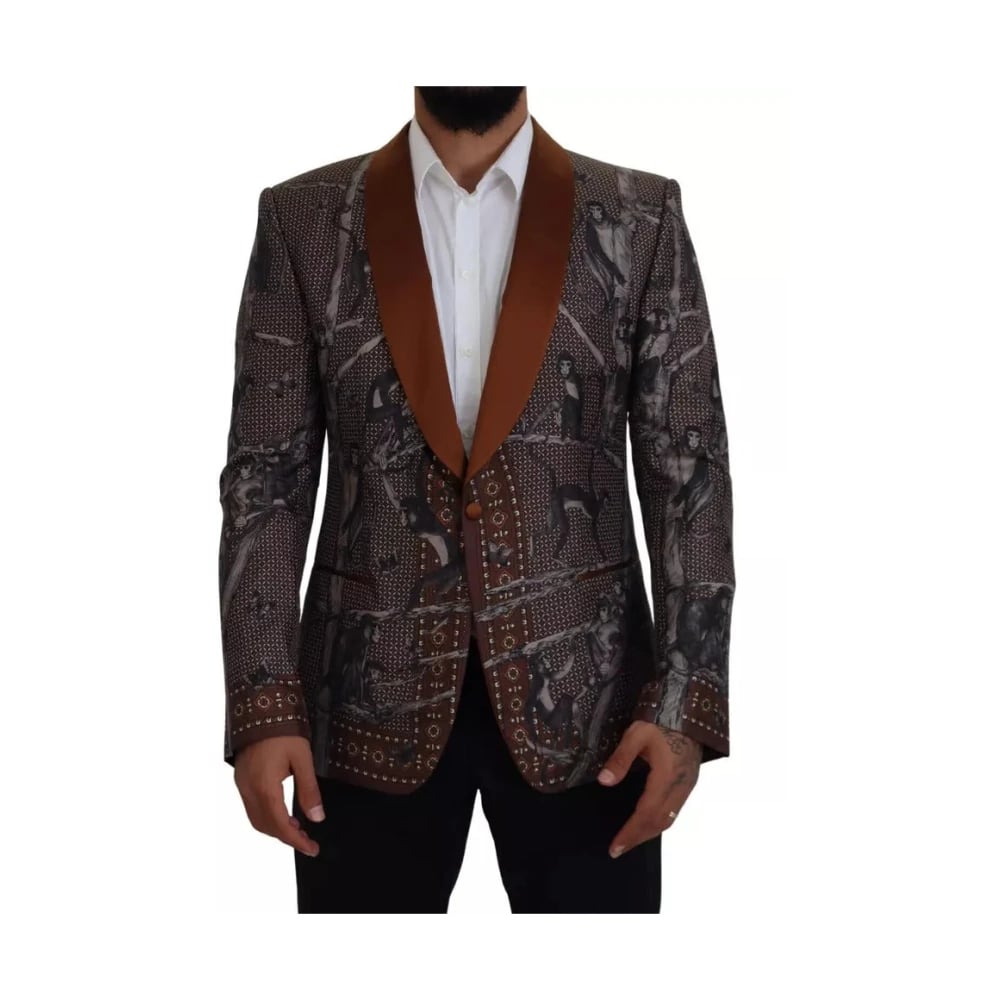Dolce & Gabbana, Jakker , Herre, Flerfarvet, S, Uld, Bronze Monkey Print Silke Blazer Jakke