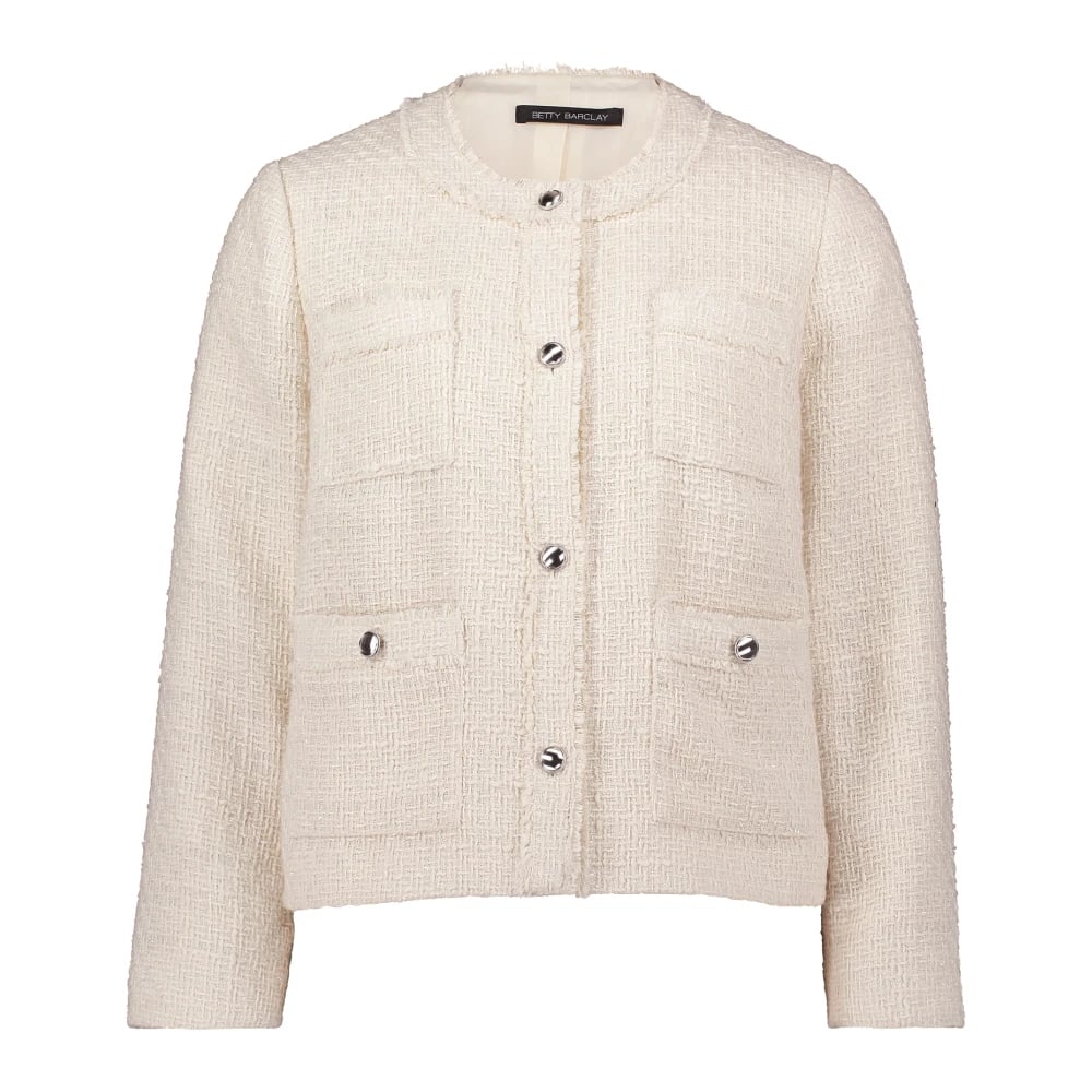 Betty Barclay, Jakker , Dame, Beige, 4XL, Tweed, Frynse Blazer Jakke Trendy Elegant Stil
