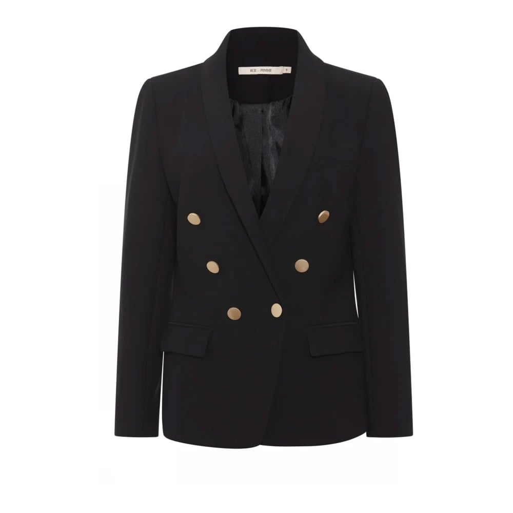 Kocca, Jakker , Dame, Sort, XL, Uld, Elegant Double Breasted Blazer Jakke