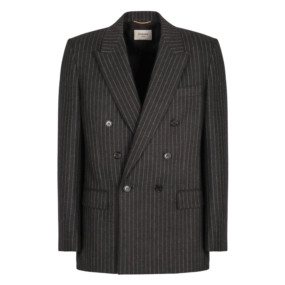 Saint Laurent, Jakker , Dame, Grå, L, Uld, Uld Dobbelt-Brygget Blazer Jakke