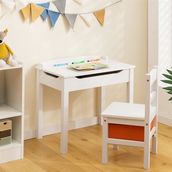 Børnebord med stol i træ og opbevaring – Hvid