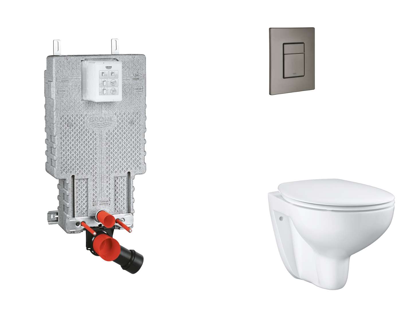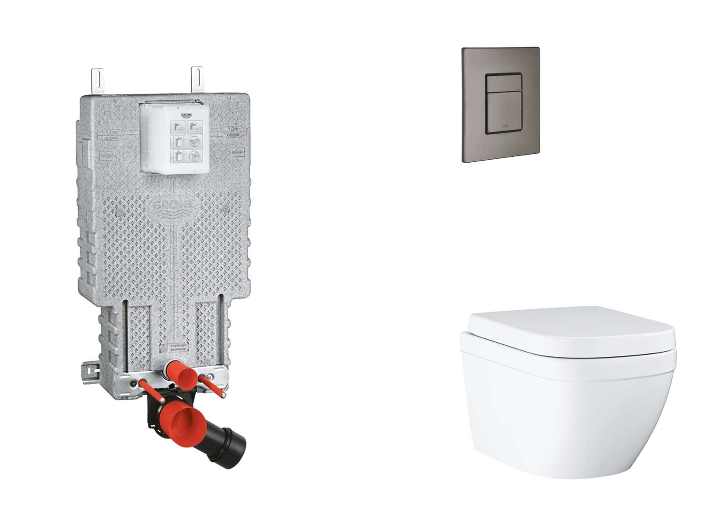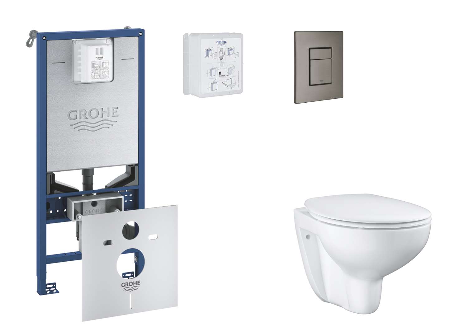 Grohe Uniset - Sæt med vægmonteret installation, toilet, SoftClose-sæde og Skate Cosmopolitan-knap, børstet Hard Graphite SANI15BB5102