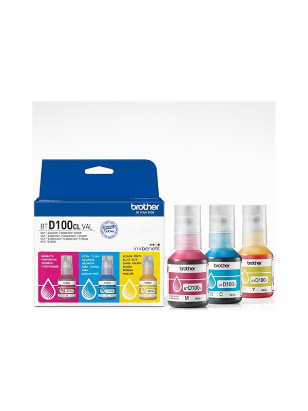 Brother BTD100CL Value Pack - 3-pack - high capacity - yellow cyan magenta - original - ink refill - Blækrefill Cyan