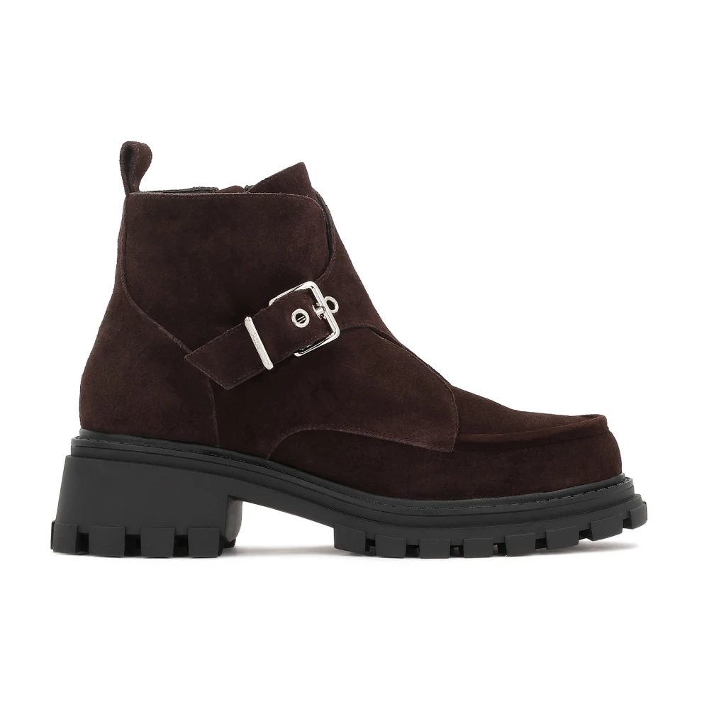 Ganni, Sko , Dame, Brun, 38 EU, Chunky Buckle Chelsea Støvler Brun