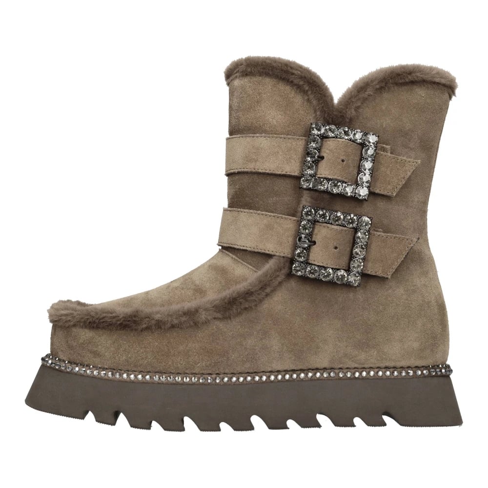 3JUIN, Sko , Dame, Brun, 36 EU, Læder, Brun Ruskind Harness Støvler