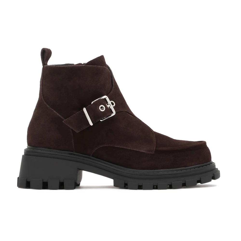 Kazar, Sko , Dame, Brun, 40 EU, Tyl, Brun ruskind støvler på en solid sål med en dekorativ spænde