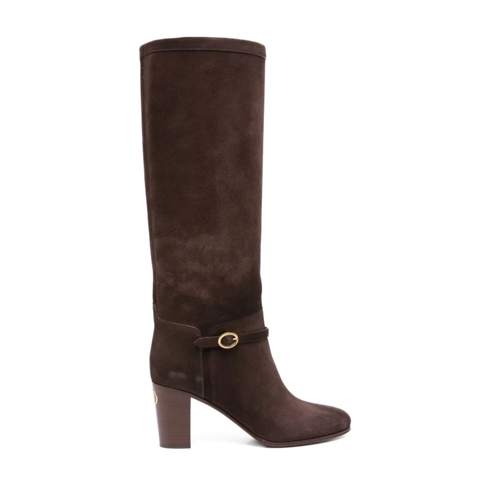 Valentino Garavani, Sko , Dame, Brun, 38 1/2 EU, Læder, Brun Læder Blokhæl Støvler