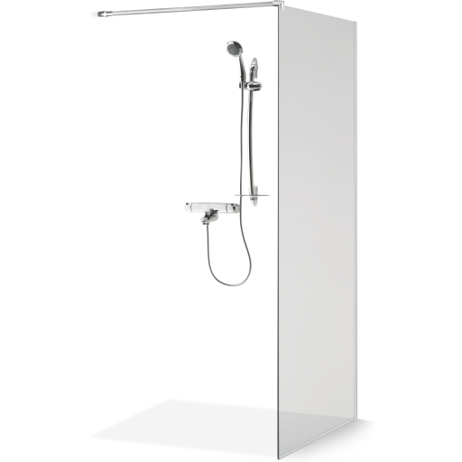 Cassøe brusevæg, 100 cm, klart glas, krom profil