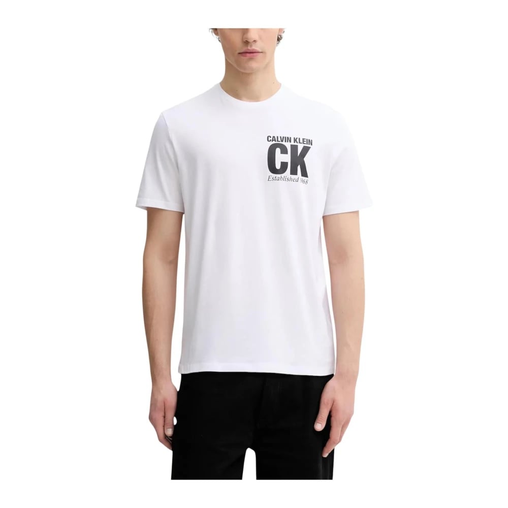 Calvin Klein Jeans, Toppe , Herre, Hvid, S, Bomuld, Hvid Print Kortærmet T-Shirt
