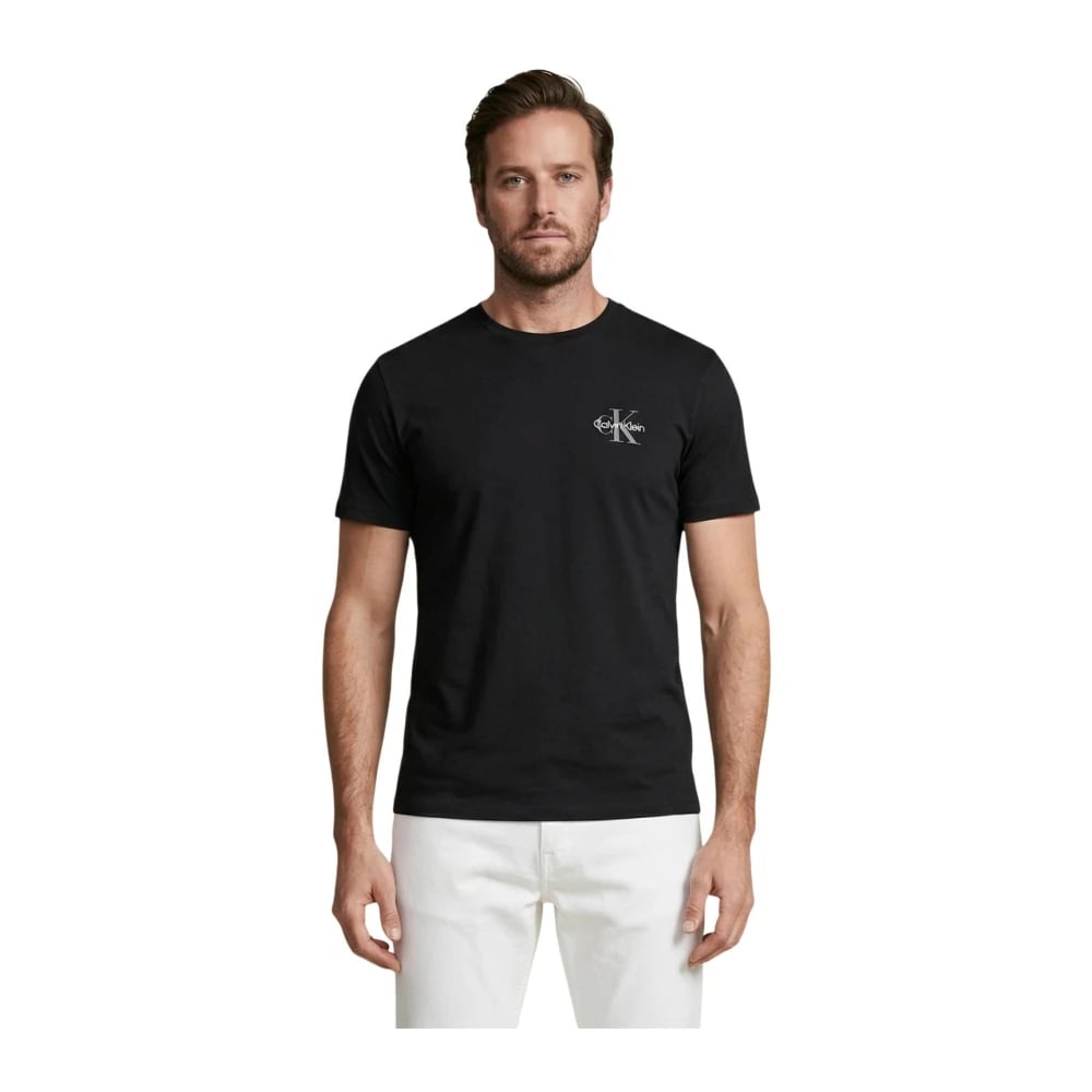 Calvin Klein, Toppe , Herre, Sort, XL, Bomuld, Sort Pima-bomuld T-shirt med CK Monogram