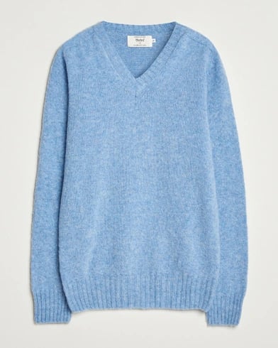 Harley Of Scotland Brushed Supersoft Lambswool V-Neck Light Blue