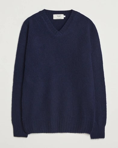 Harley Of Scotland Brushed Supersoft Lambswool V-Neck Navy