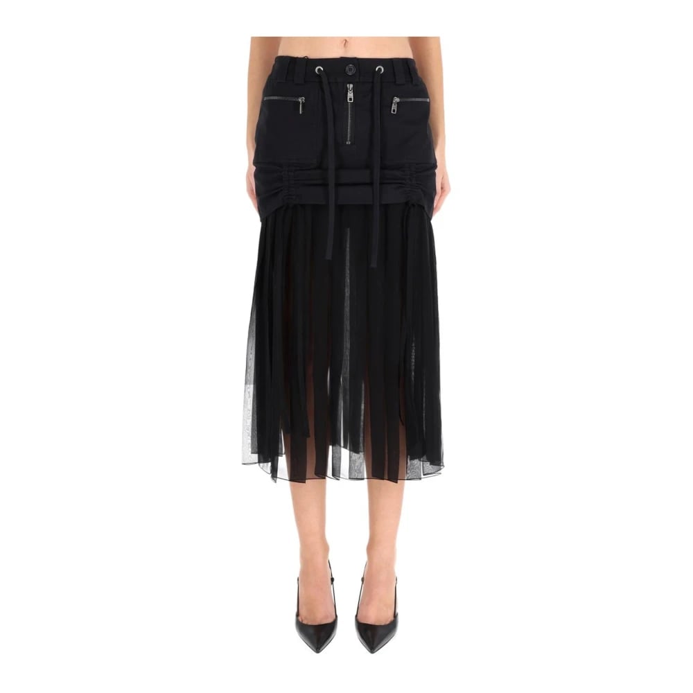 Dolce & Gabbana, Nederdele , Dame, Sort, S, Chiffon, Cargo Plisseret Midi Nederdel