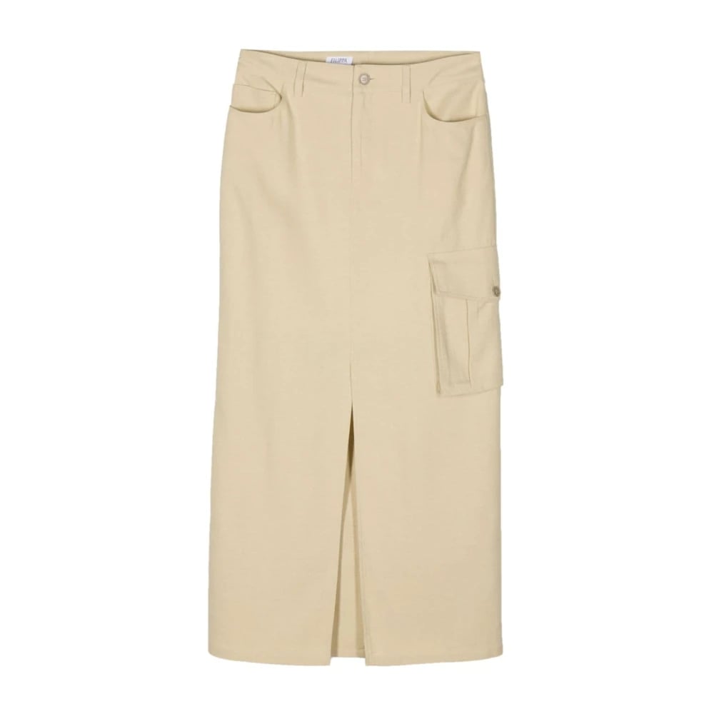Emma&Gaia, Nederdele , Dame, Beige, S, Bomuld, Midi Bomulds Cargo Nederdel