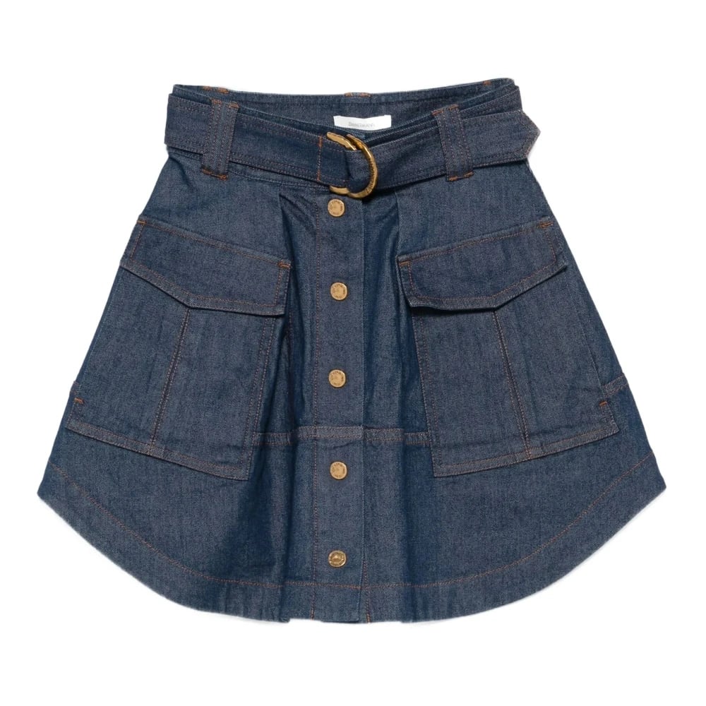 Zimmermann, Nederdele , Dame, Blå, XS, Bomuld, Cargo Knappe Flare Nederdel