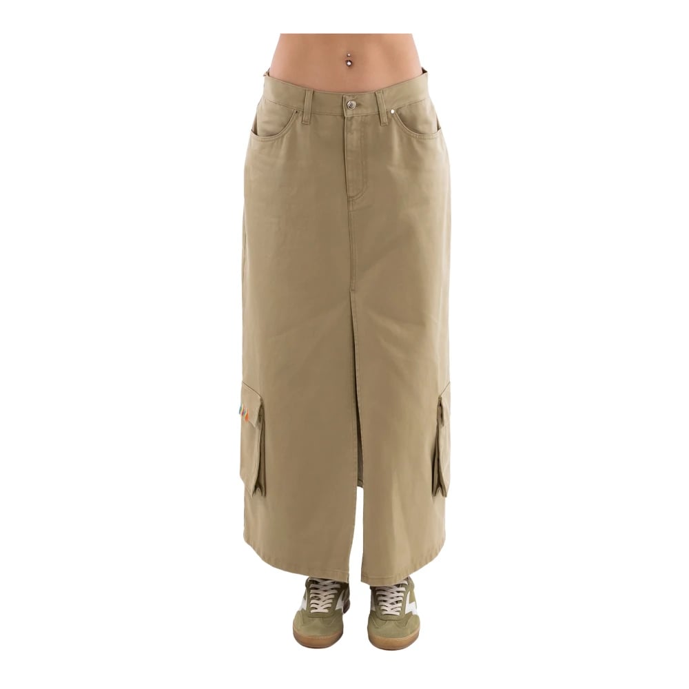 Ottod'Ame, Nederdele , Dame, Grå, 2XS, Bomuld, Cargo Pocket Lang Nederdel