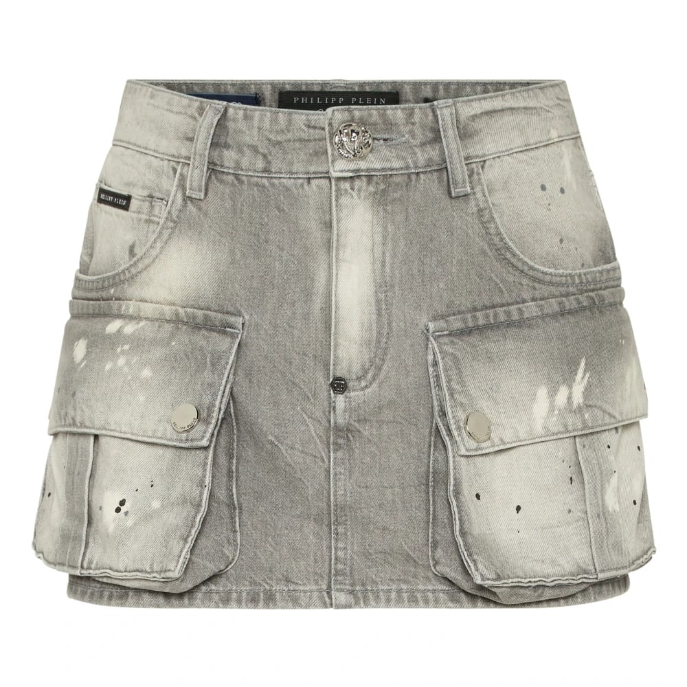 Philipp Plein, Nederdele , Dame, Grå, L, Denim, Denim Cargo Mini Nederdel