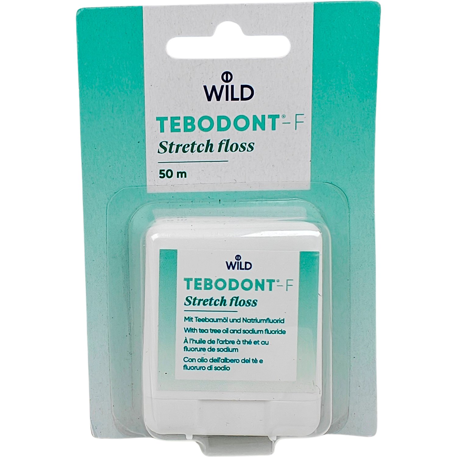 Premium Tandtråd med Tea Tree Oil & Fluor WILD TEBODONT-F Stretch Floss 50 mtr.