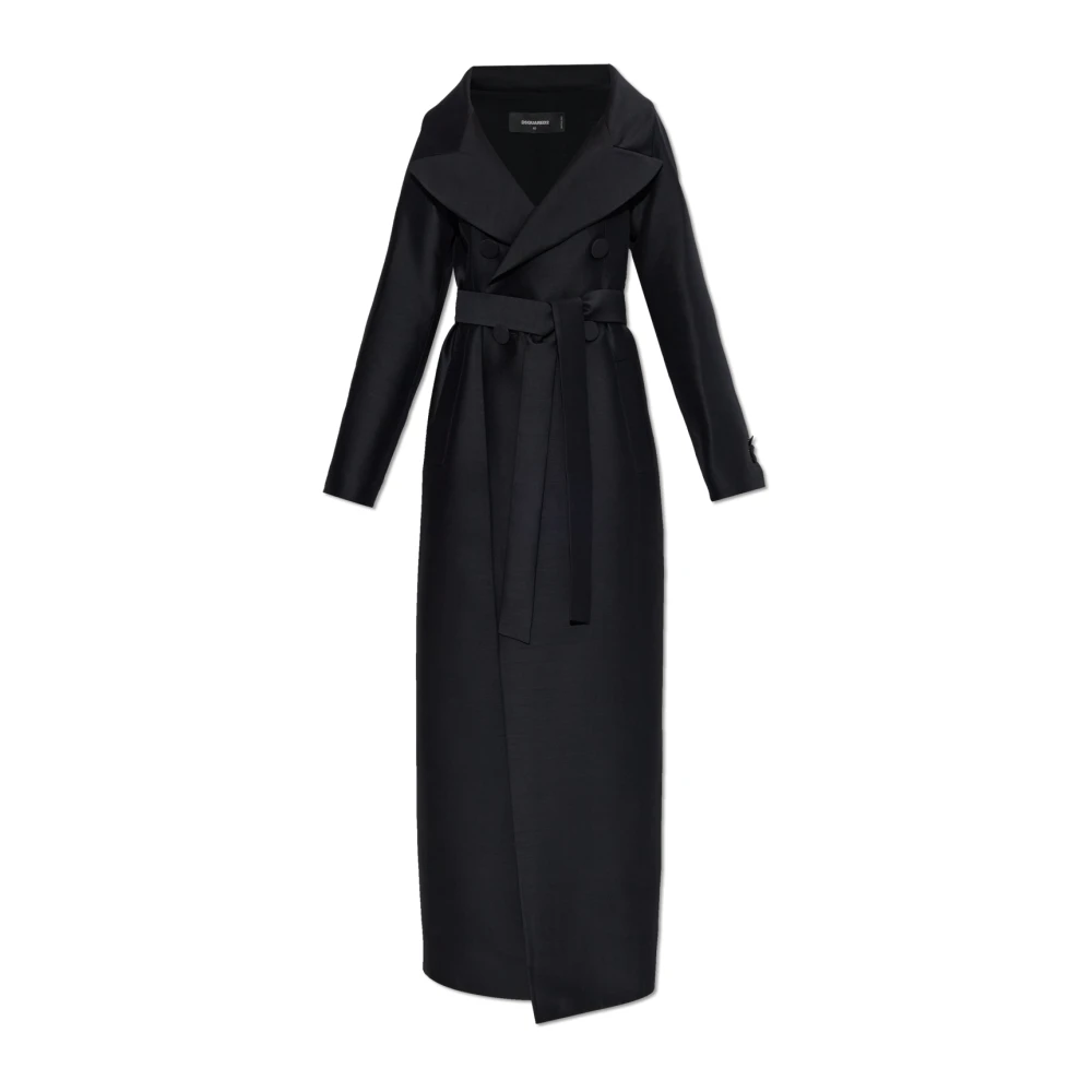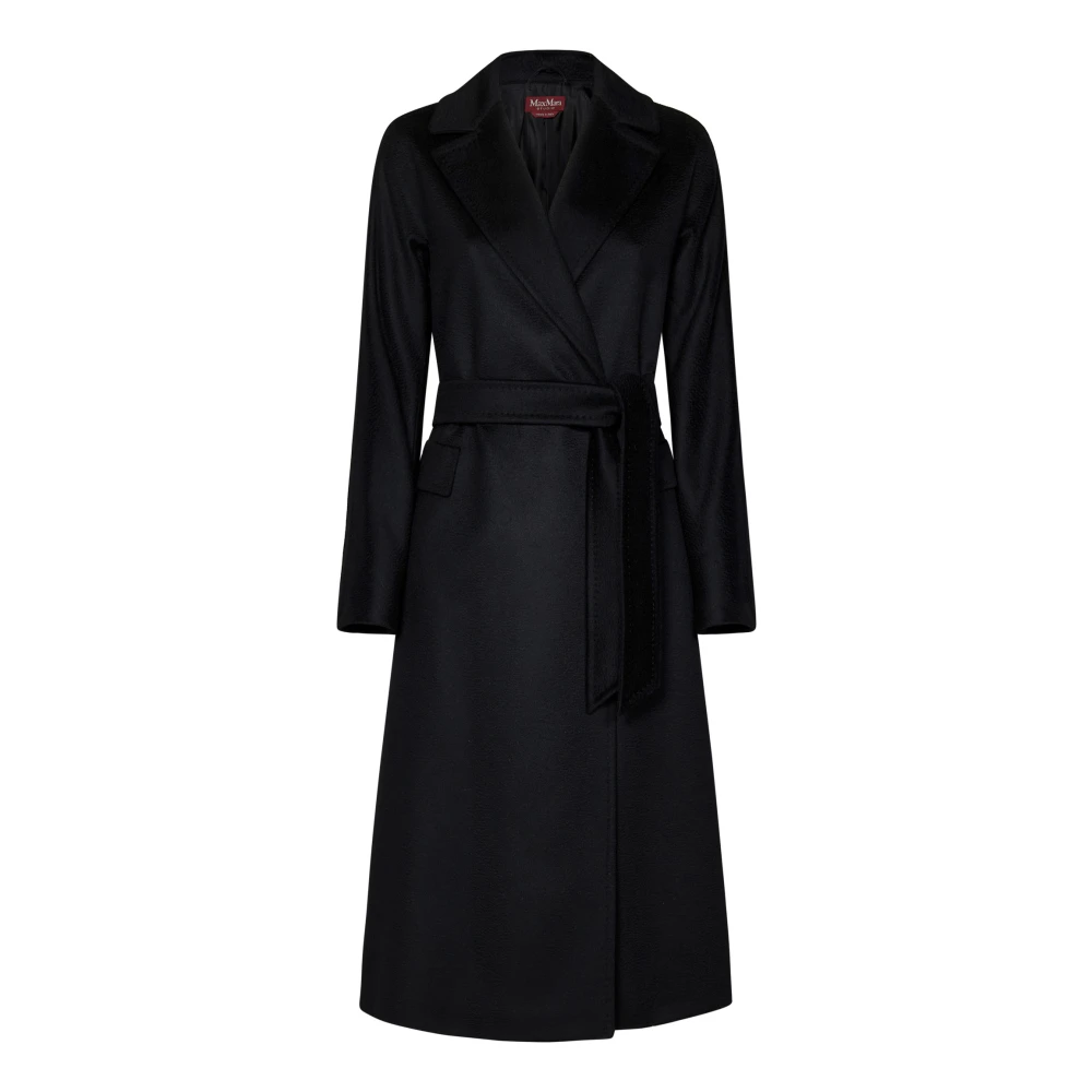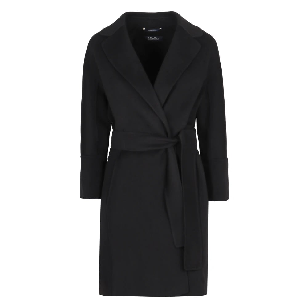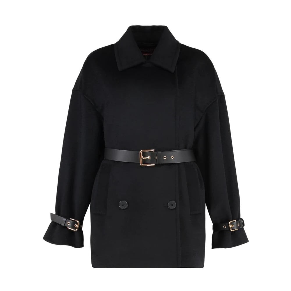 Max Mara Studio, Frakker , Dame, Sort, XS, Uld, Dobbeltknappet uldfrakke med bælte