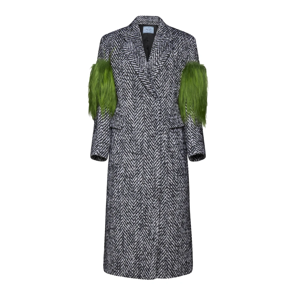 Prada, Frakker , Dame, Grå, XS, Uld, Lang uldfrakke, elegant stil