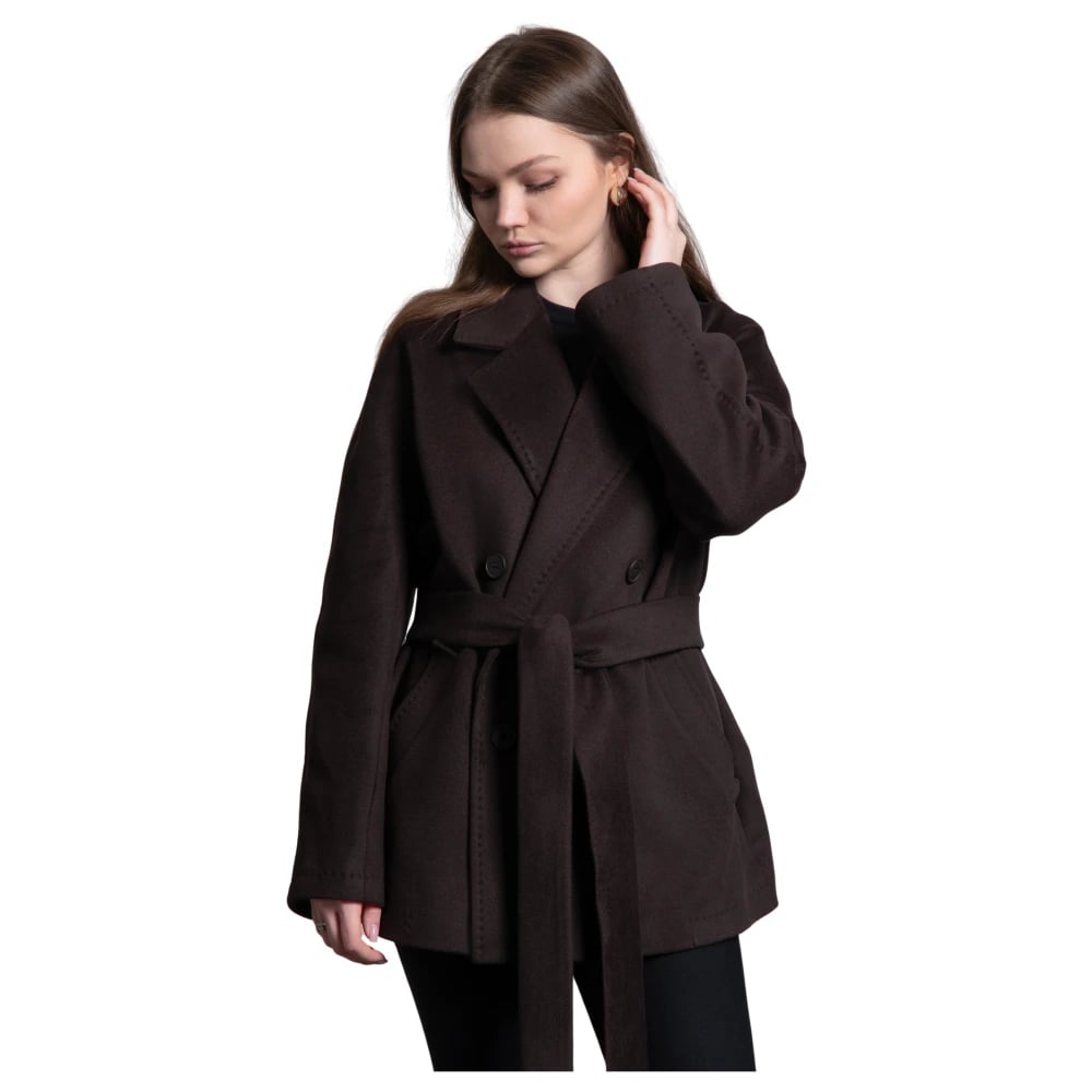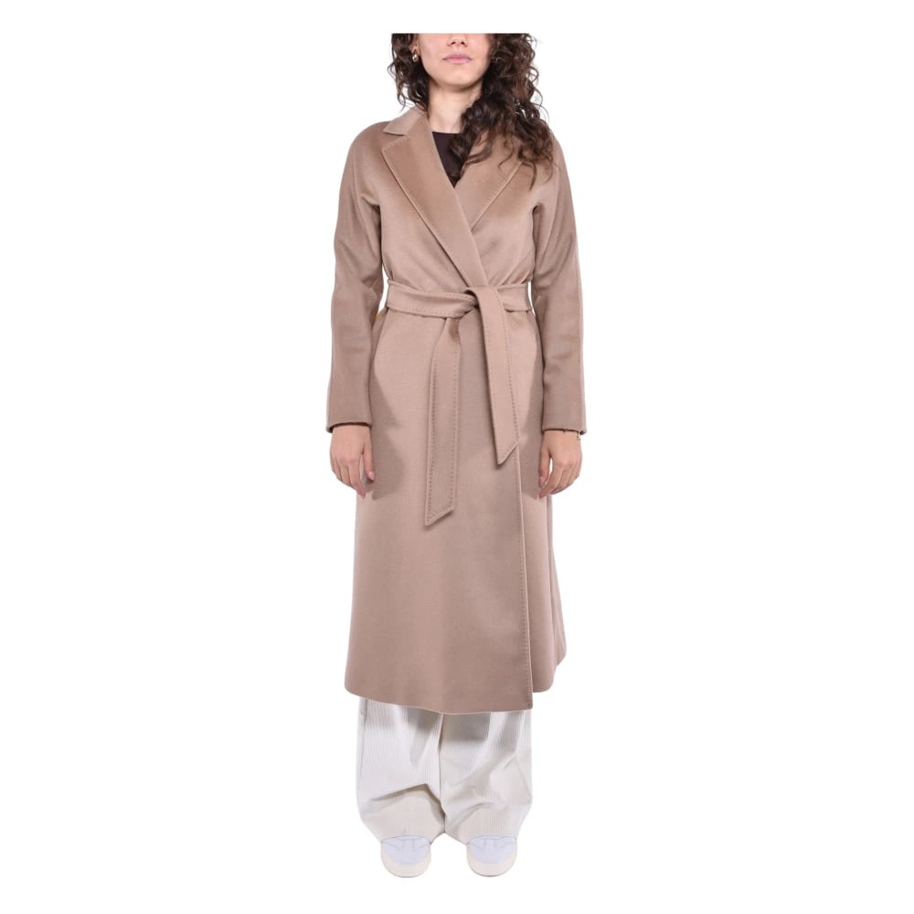 Max Mara Studio, Frakker , Dame, Brun, 3XS, Uld, Lang uldfrakke med bælte