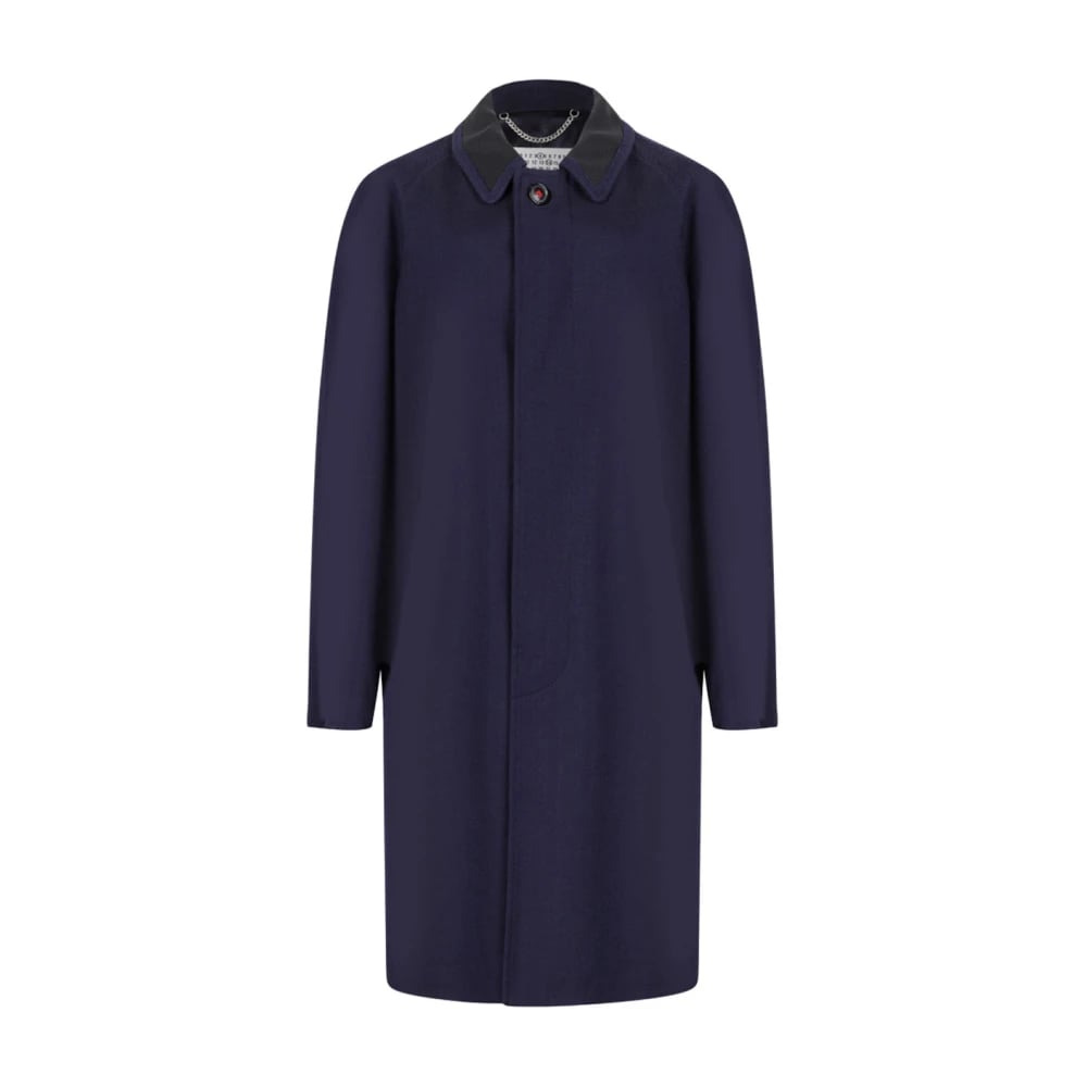 Maison Margiela, Frakker , Dame, Blå, S, Uld, Enkeltknappet uldfrakke
