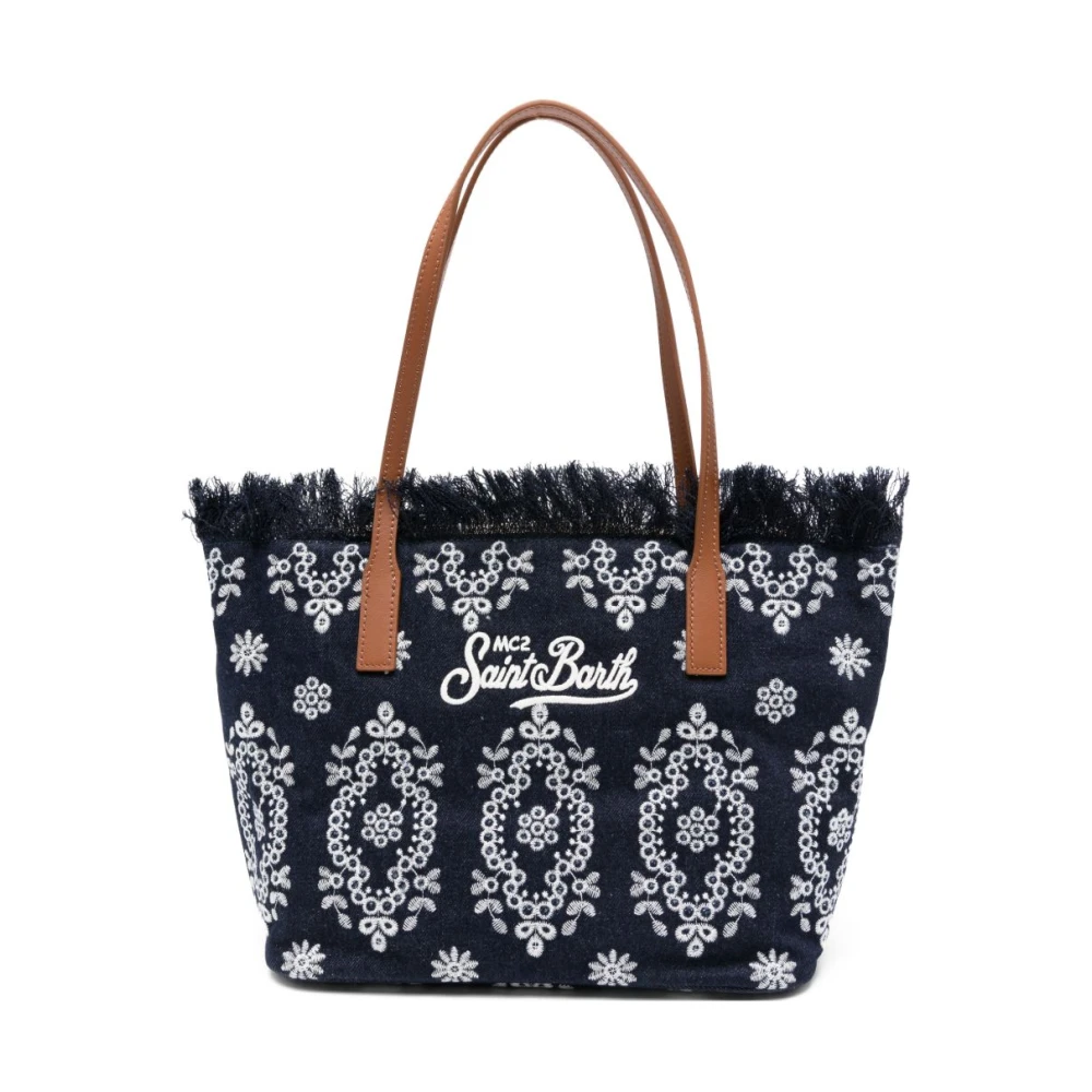 MC2 Saint Barth, Tasker , Dame, Blå, ONE SIZE, Denim, City Bag Mid Fringe Sangallo
