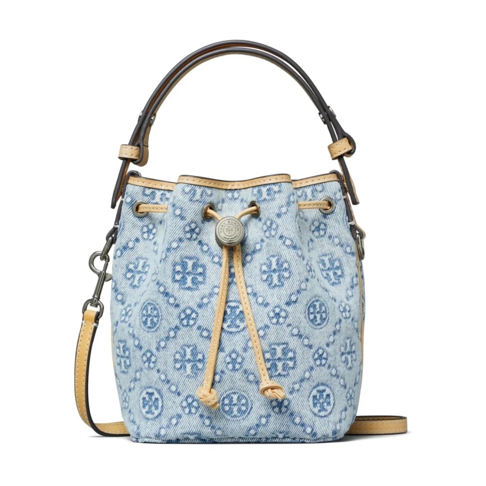 Tory Burch, Tasker , Dame, Blå, ONE SIZE, Denim, Mini T Monogram Denim Bucket Bag