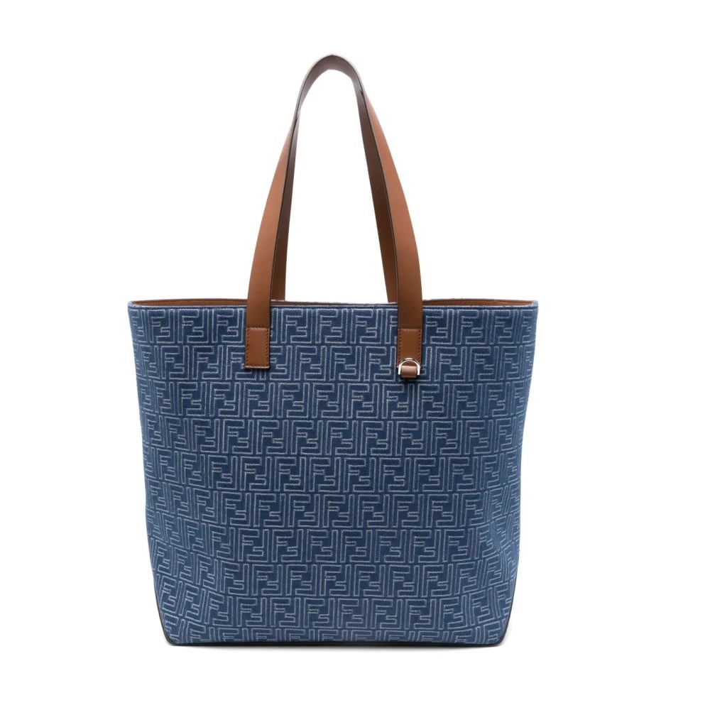 Fendi, Tasker , Herre, Blå, ONE SIZE, Denim, FF Jacquard Denim Medium Shopping Bag