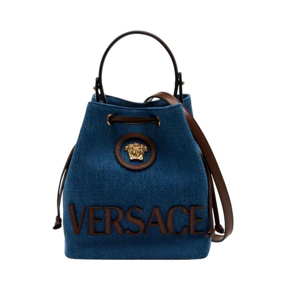 Versace, Tasker , Dame, Blå, ONE SIZE, Denim, La Medusa Denim Bucket Bag