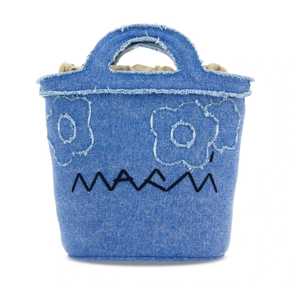 Marni, Tasker , Dame, Blå, ONE SIZE, Denim, Broderet Denim Bucket Bag