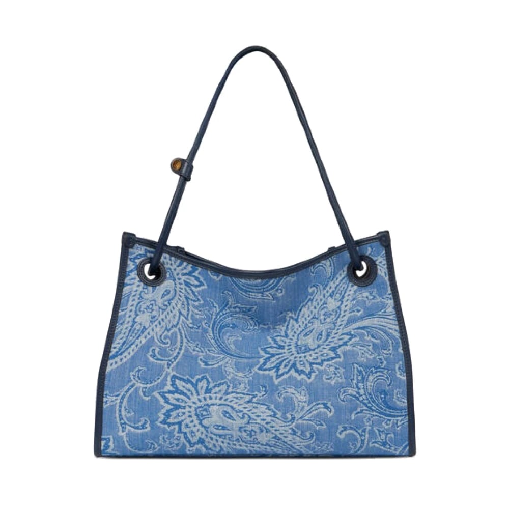 Etro, Tasker , Dame, Blå, ONE SIZE, Denim, Medium Eyes Jacquard Denim Tote Bag