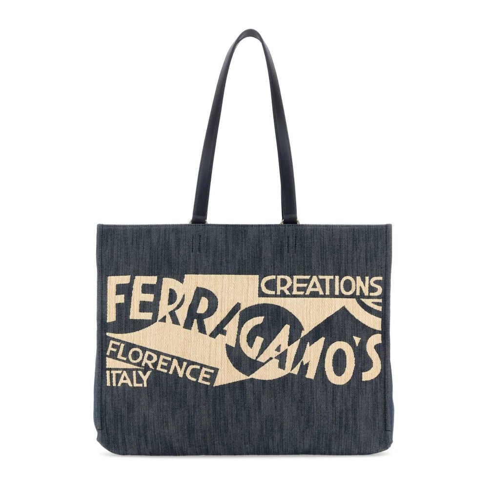 Ferragamo, Tasker , Dame, Flerfarvet, ONE SIZE, Denim, Denim TT Sign Shopping Bag