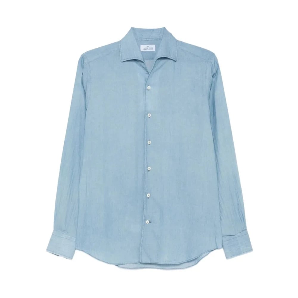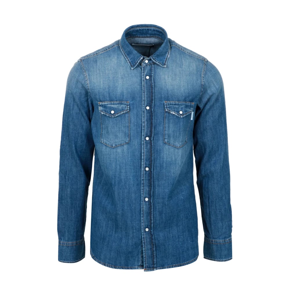 Mauro Grifoni, Skjorter , Herre, Blå, XL, Denim, Denim Krave Skjorte Lange Ærmer Lommer