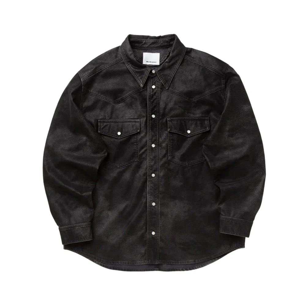 Isabel Marant, Jakker , Herre, Sort, M, Denim, Sort Skjorte med Lommer og Knapper