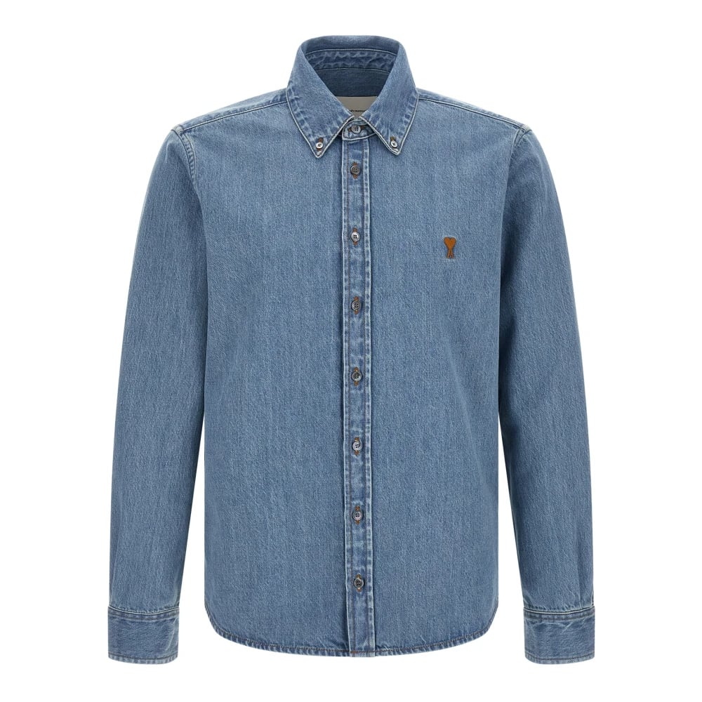 Ami Paris, Skjorter , Herre, Blå, M, Denim, Ami de Coeur Button-Down Denim Skjorte