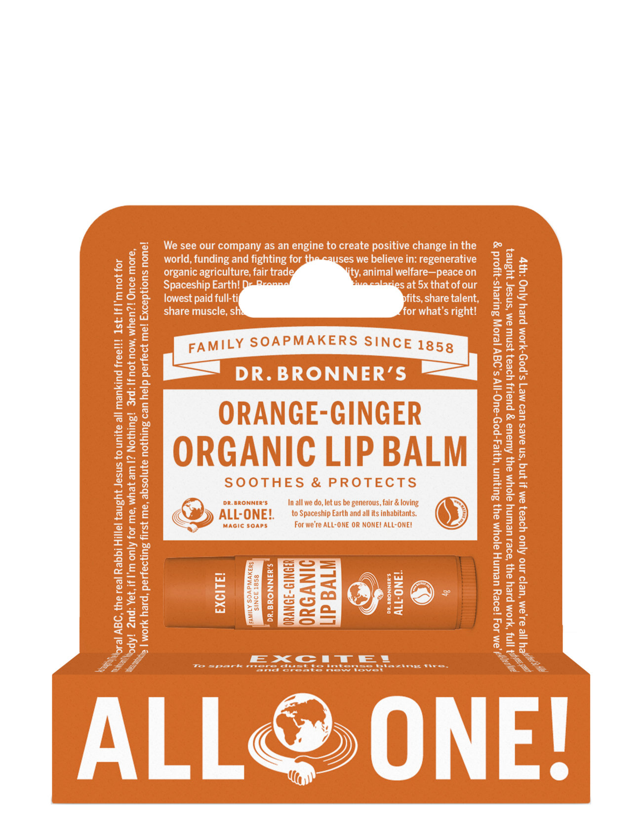 Orange-Ginger Organic Lip Balm Hang Pack Læbebalsam Lip Balm Nude Dr. Bronner’s
