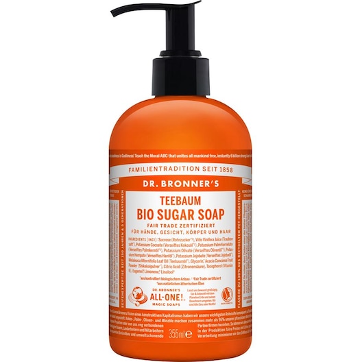 Dr-Bronners Pleje Flydende-saeberTea Tree økologisk sukkersæbe 355 ml (262,00 kr / 1 l)