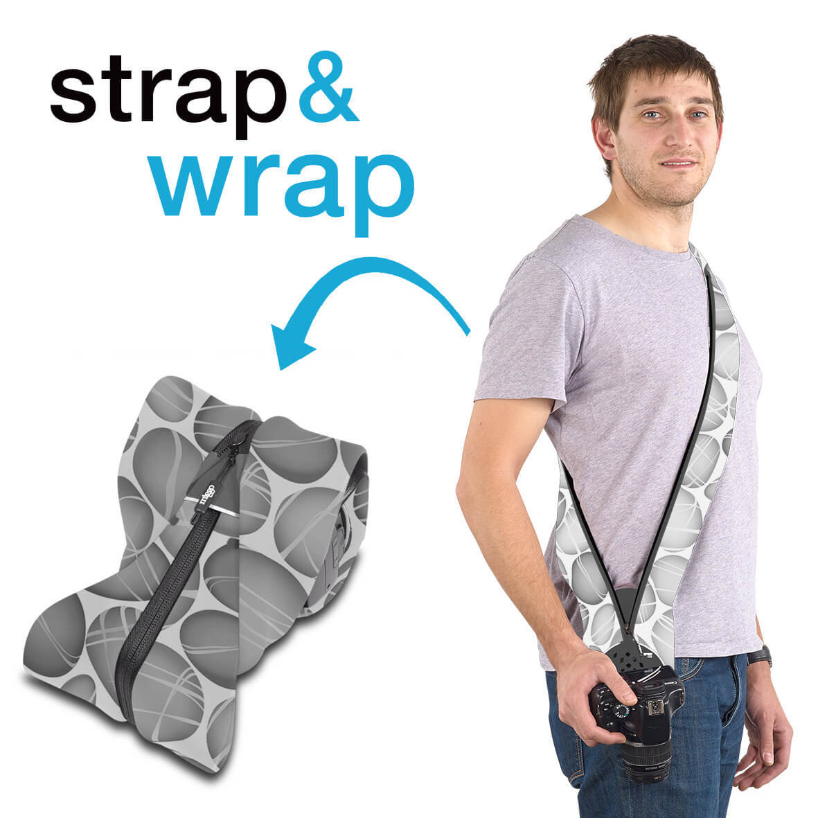 MIGGO Kamera Wrap/Rem 90 DSLR Pebble Road Hvid/Grå