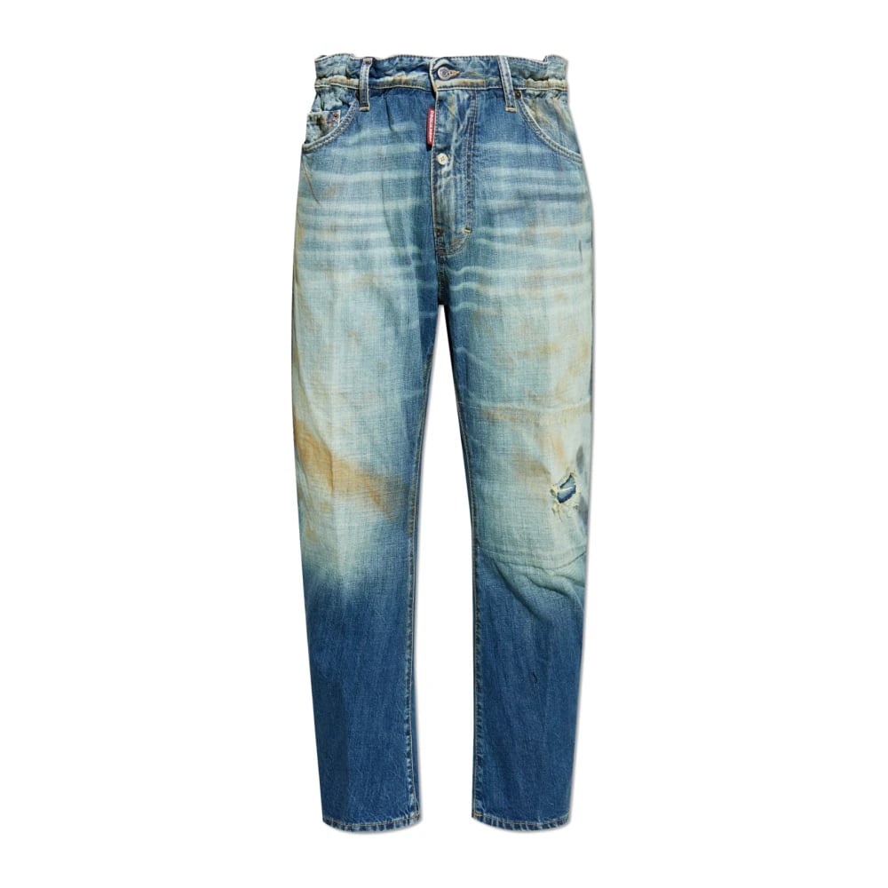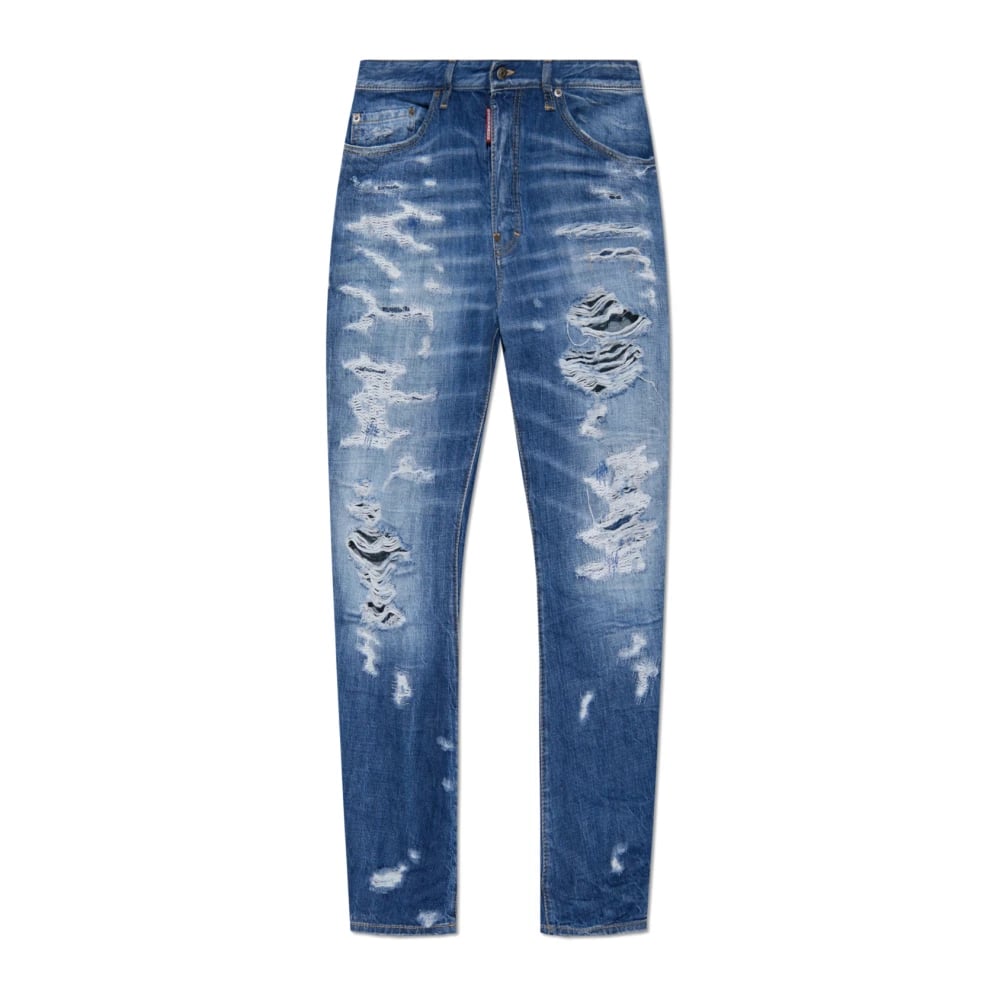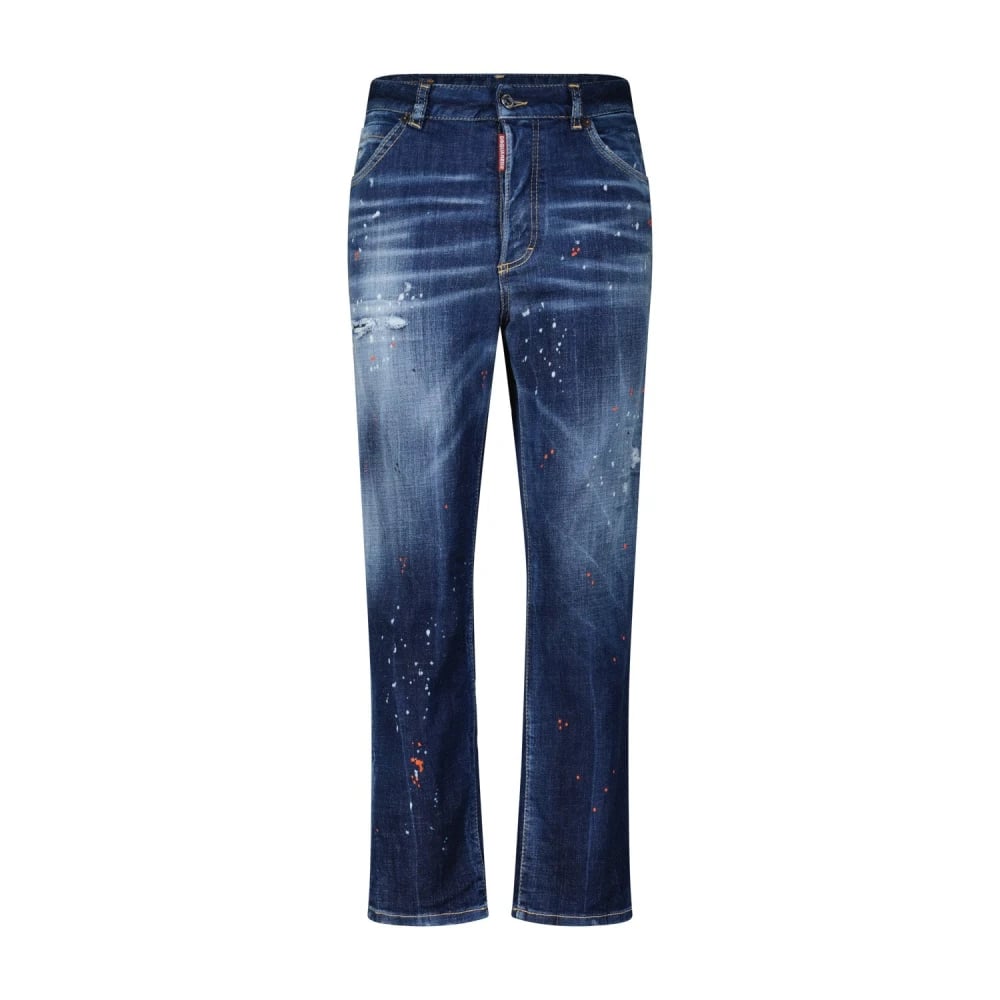 Dsquared2, Jeans , Herre, Blå, 2XL, Bomuld, Blå Slidte Afslappede Fit Jeans