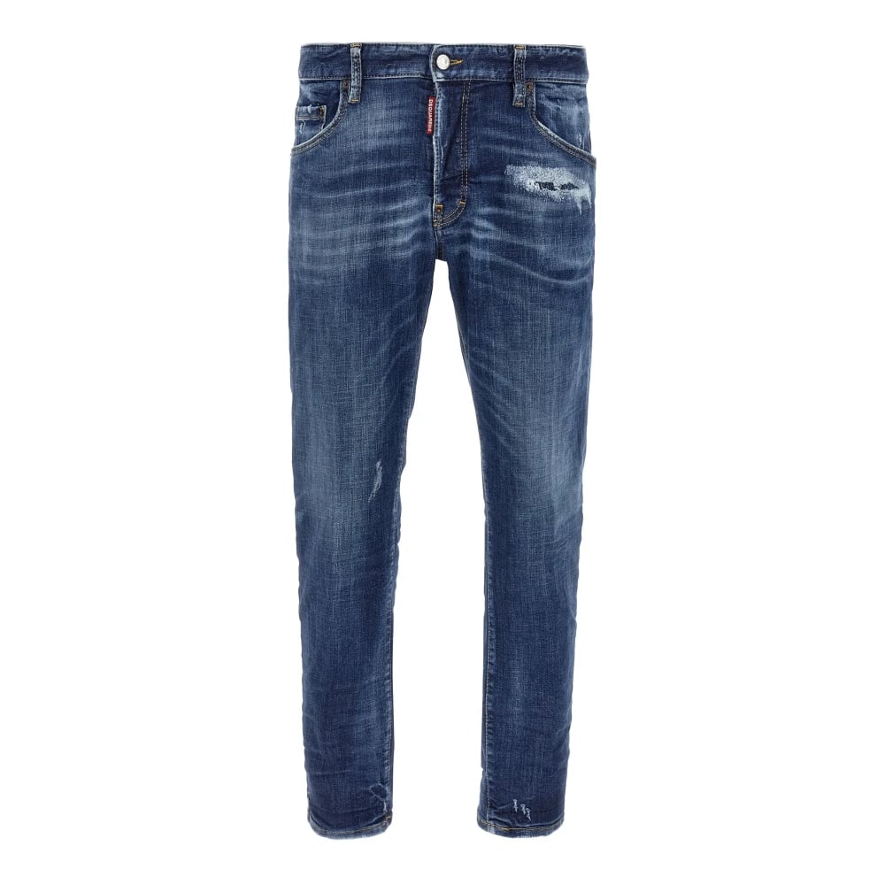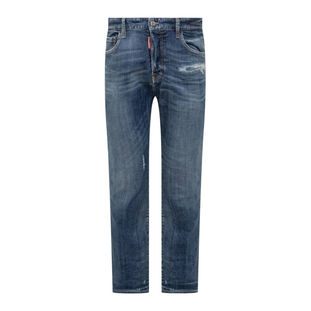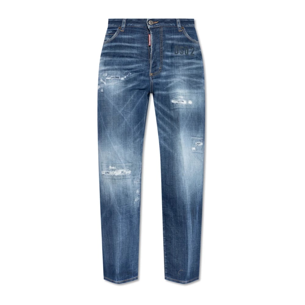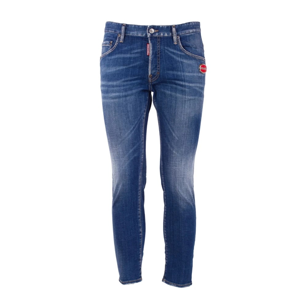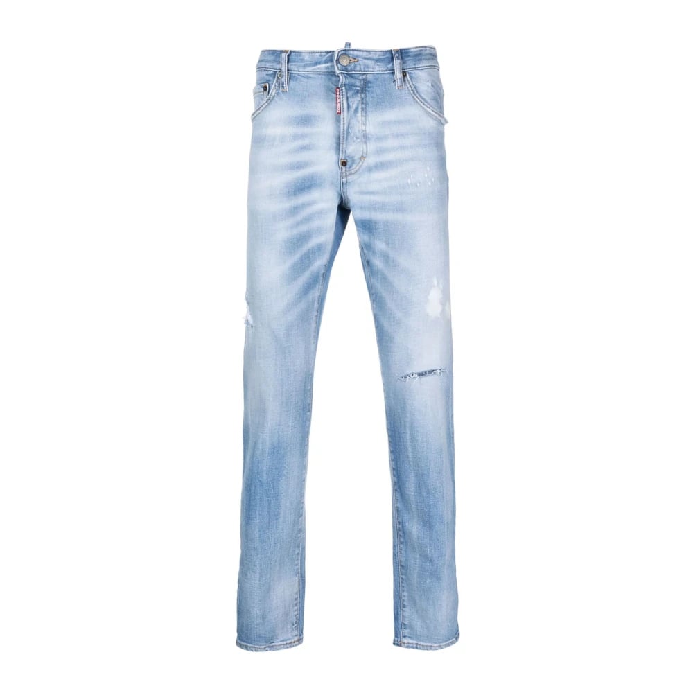 Dsquared2, Jeans , Herre, Blå, M, Logo Patch Slidte Blå Jeans