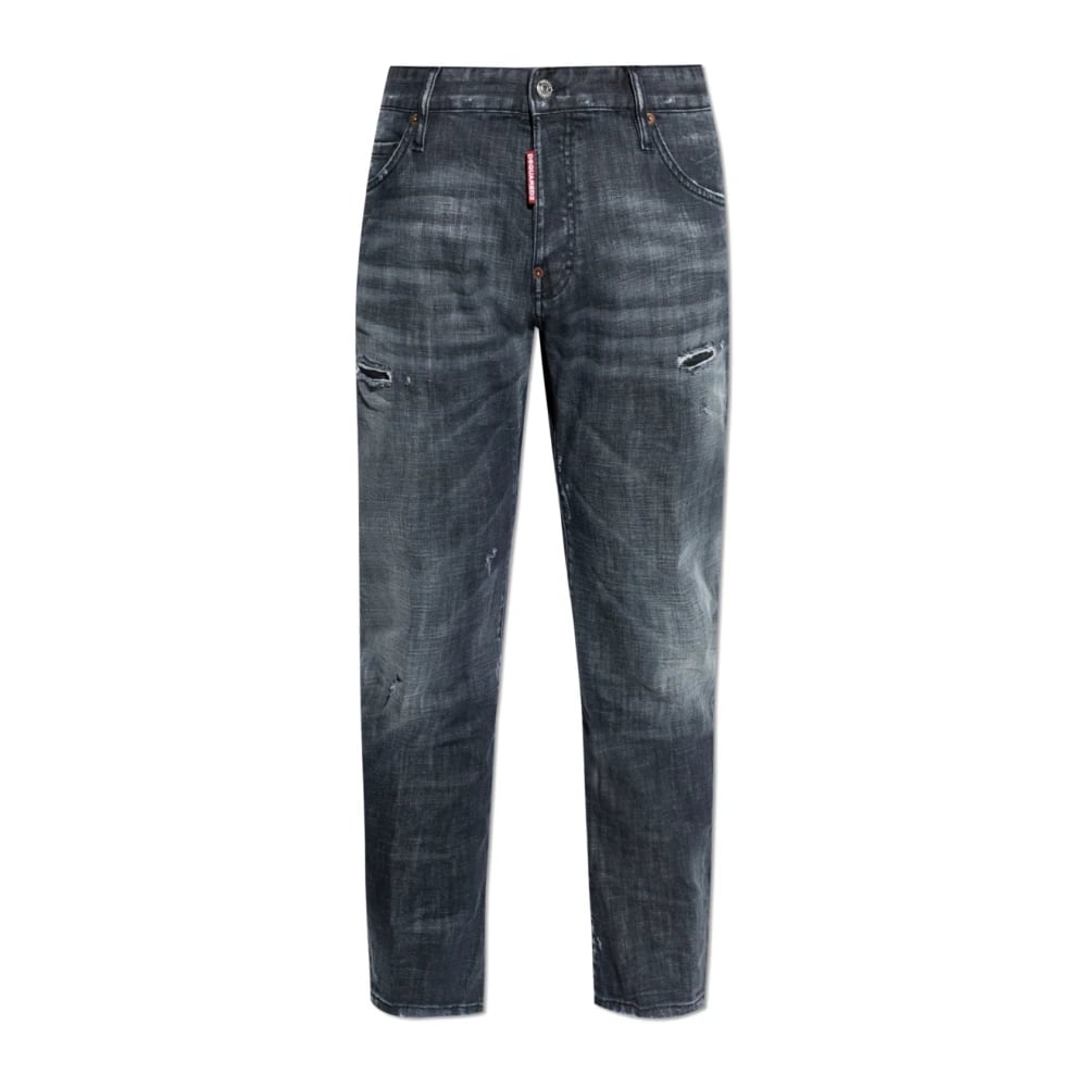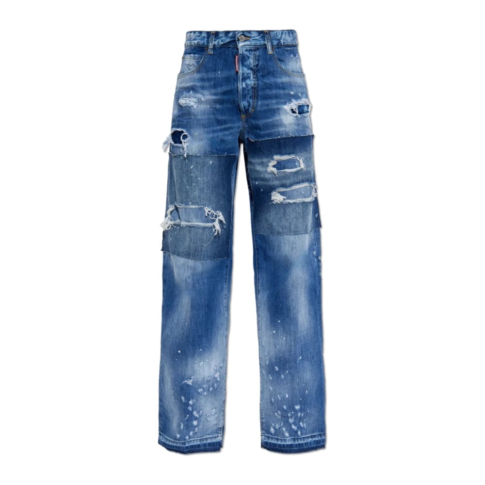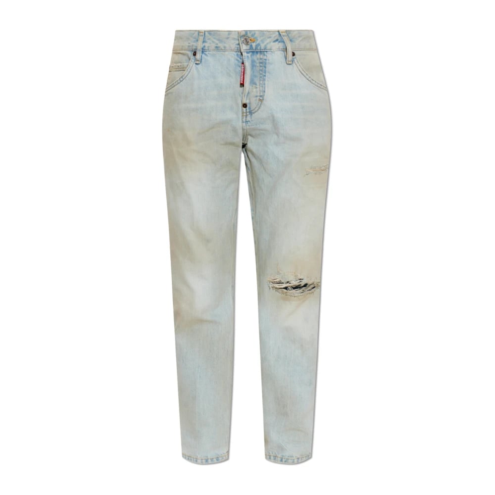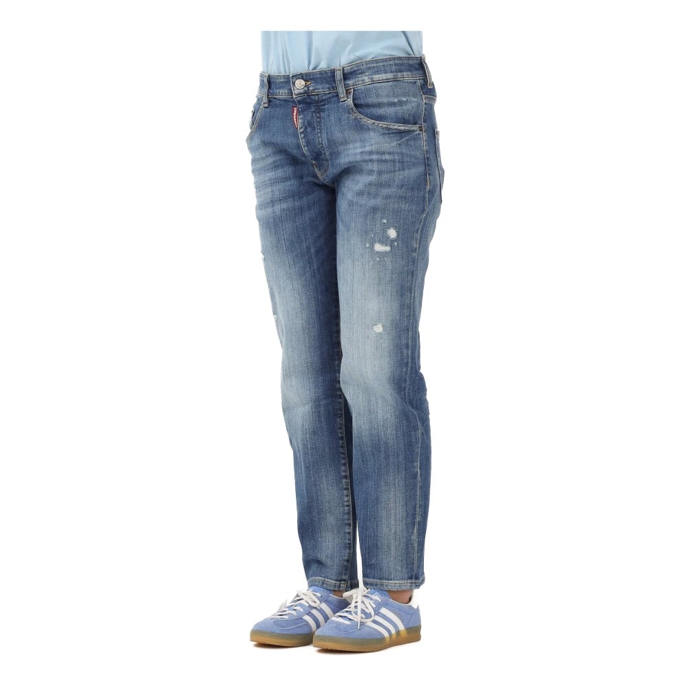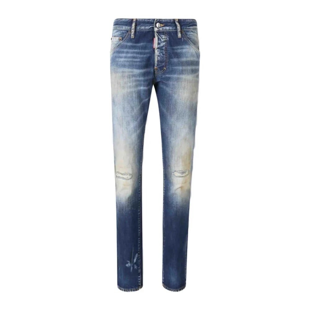 Dsquared2, Jeans , Herre, Blå, M, Logo Patch Slidte Blå Jeans