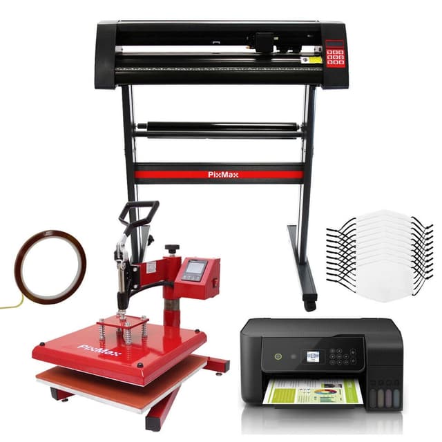 10 sublimeringsmasker, Clam 38 cm varmepresse og Eco Tank-printer