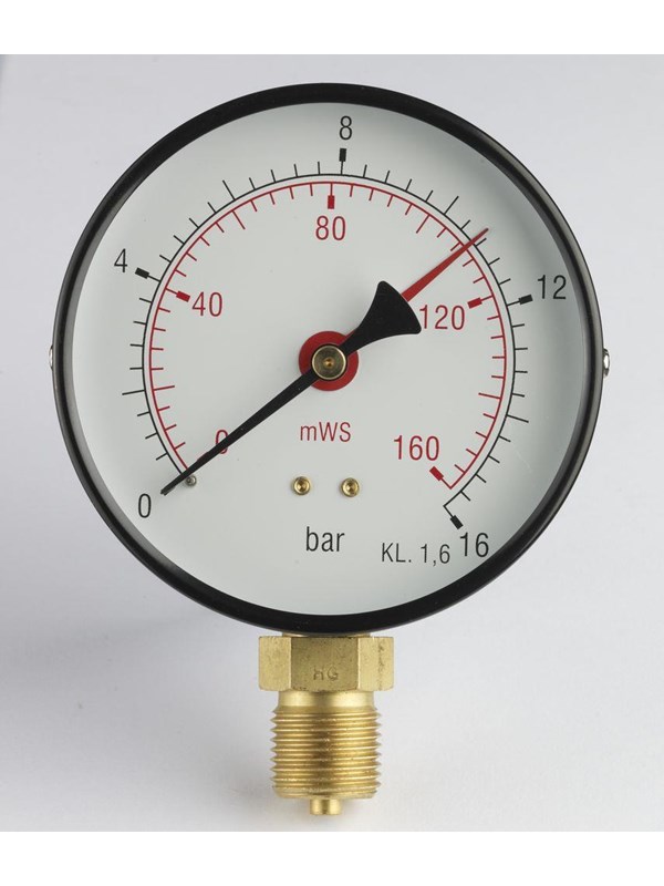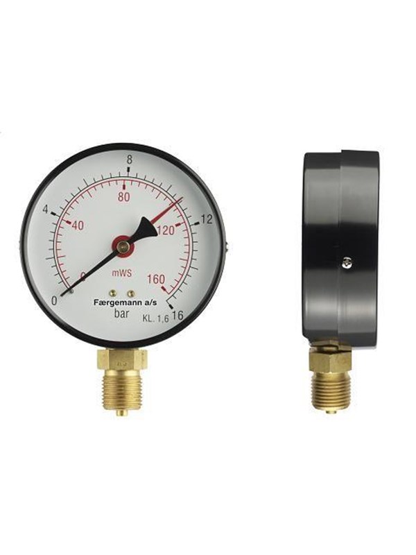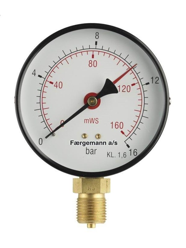 Erik Færgemann Manometer 1/2xø100 0-16 bar/0-160 mvs, nedadrettet studs