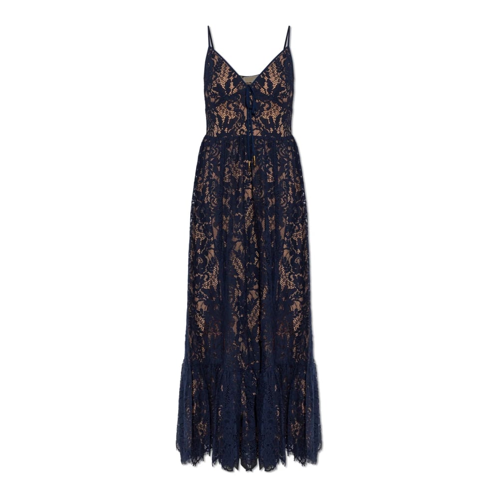Michael Kors, Kjoler , Dame, Blå, L, Bomuld, Corded Floral Lace Maxi Dress
